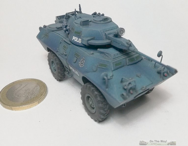| This is the cool ACE LAV-150 APC with 20mm gun from the Royal Malaysian Police. Built out of the box with adding the light brush guards from copper wire. |