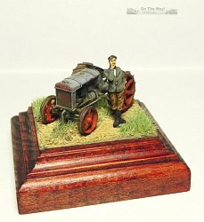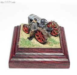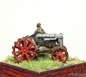 | This is a resin Fordson-Putilovets Soviet farm tractor from Model Stroy The model represents one of the first Soviet tractors which were issued in large quantities (from 1924-1932). The real tractor was a Ford licensed copy made at the Leningrad plant "Red Putilovets". The tractor driver figure is from an Alex Miniatures set. |
