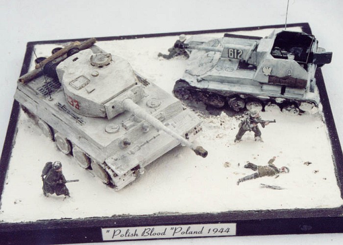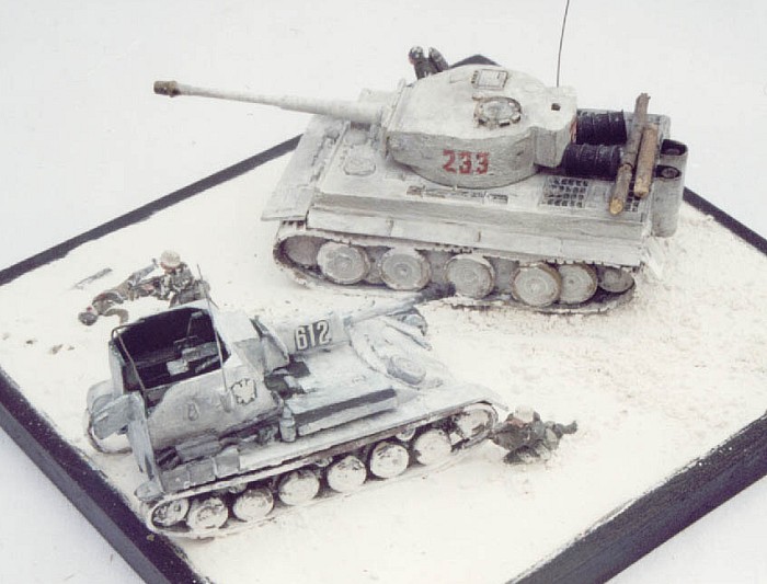 The kits are: Tiger I by Hasegawa, SU-76 by Mareska, and figures from Revell and ESCI.