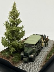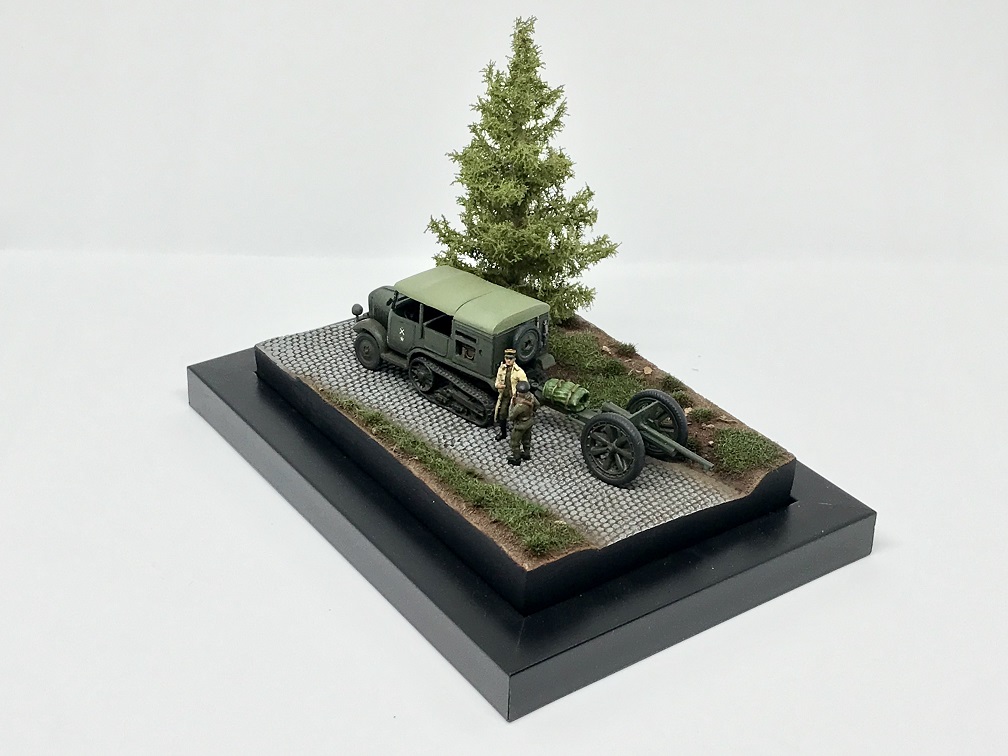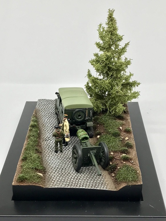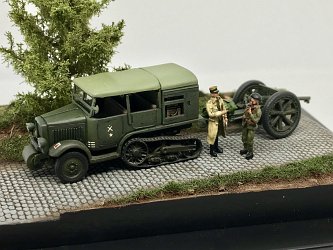 This is Olivier's dioroama depicting a scene from the German invasion of France. The UNIC P-107 is from Ace and the 75mm Mod.1897 is from First To Fight with wheels from AL.BY Miniatures. The figures come from Retrokit. |
