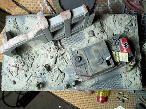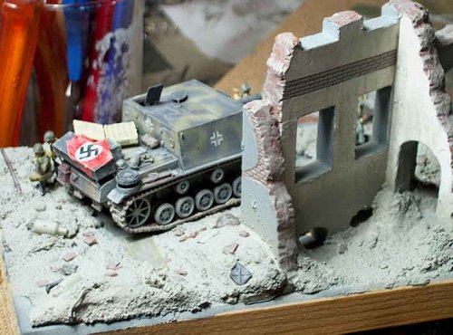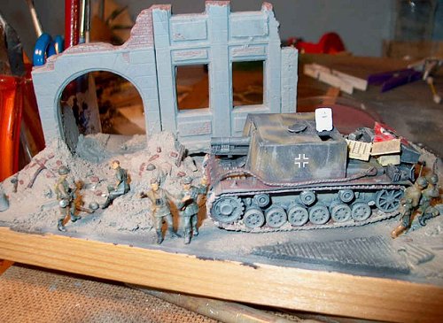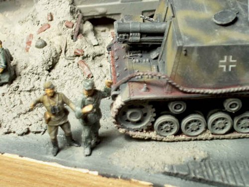 The Stug 33 is basically made of the ESCI Stug III gear and the ALBY resin top. Please excuse the big swastika!