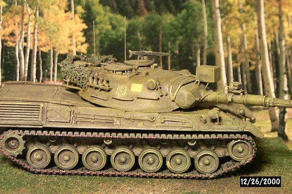 The kit went together well and appears accurate in scale and features considering the kit's age. Tracks are the link & length type. Finished in a light OD and Italian markings from the kit. This is one of three or four versions of the Leopard 1 released by ESCI, mostly differing in the turrets. This has always been one of my favorite AFV's. The vehicle is armed with the British 105-mm tank gun common to the US M60, early Merkeva, and late Chieftain tanks. Revell has recently released its own kit of a Leopard 1 with noticeable improvements over the old ESCI kit.