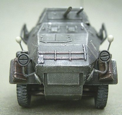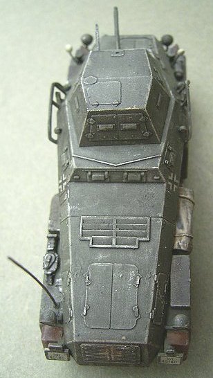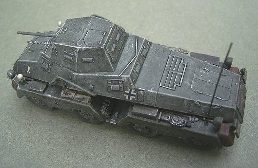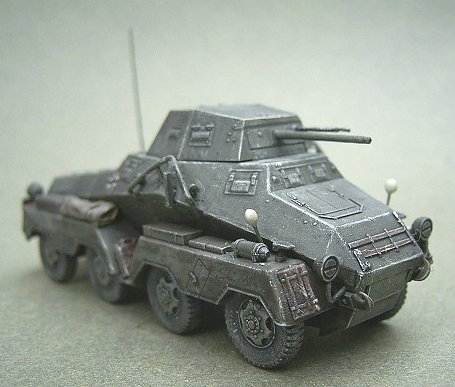 This new "8-rad" by Roden is built almost straight out-of-the-box. Some equipment have been added, (such as width indicating gauges, towing hooks, tarpaulin rolls and an antenna). The edges of the side fenders have been thinned down to approach scale thickness and the frame antenna installation holes (which are a Sd.kfz 232 feature) on the body and turret have been filled up. The markings are of the 2. Panzer Division while positioned in Balkan and Greece in 1941.