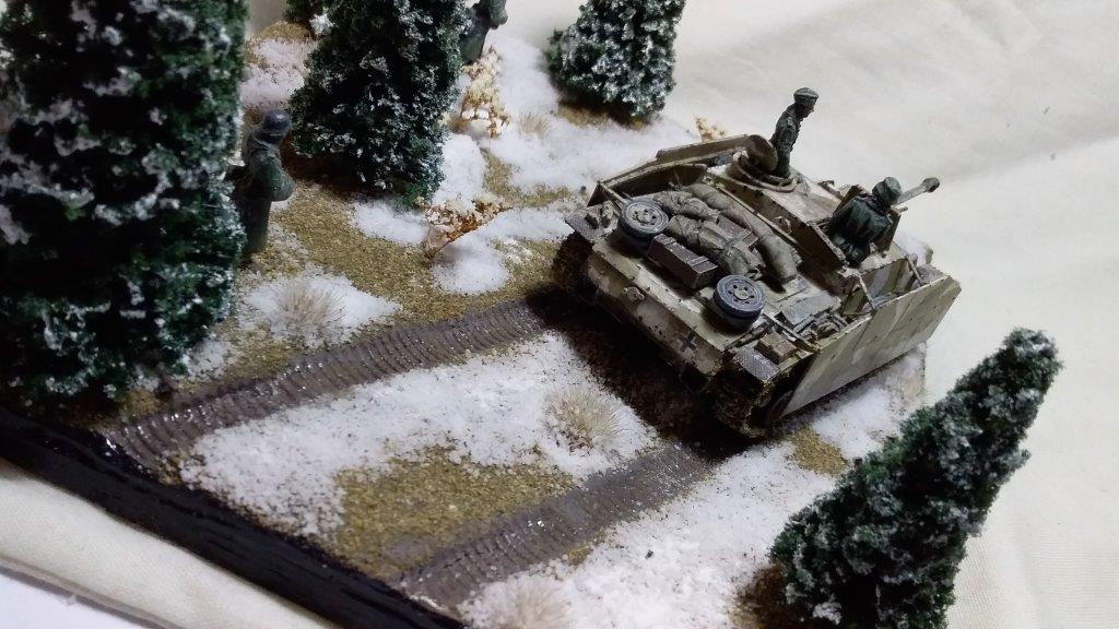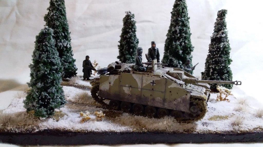 are some pics of my Dragon Sturmgeschütz III early version. It has an AB Miniatures crew and Italeri accompanying infantry. All scenic material is by Woodland Scenics. |