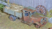 The barn is scratchbuilt from wood and paper, with a roof from Styrodur. The stonewall is also scratchbuild from clay.
