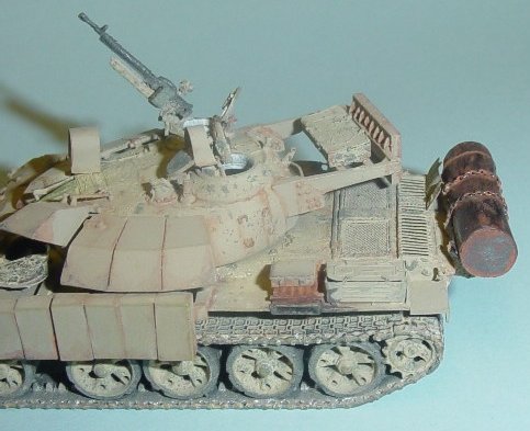 Scratch built details and rear fuel drum and some of the PART T-55 PE set, and an ARMO barrel.