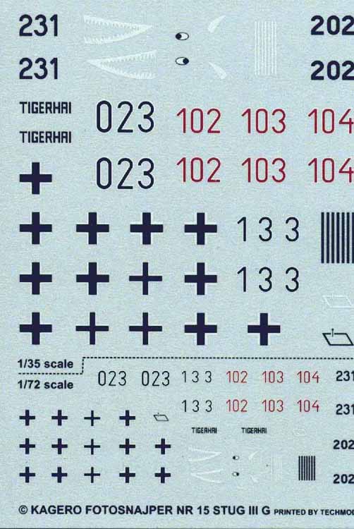 15 Stug III Ausf. G Decals are included for 1/72 and 1/35. Painting instructions and decals are given for: