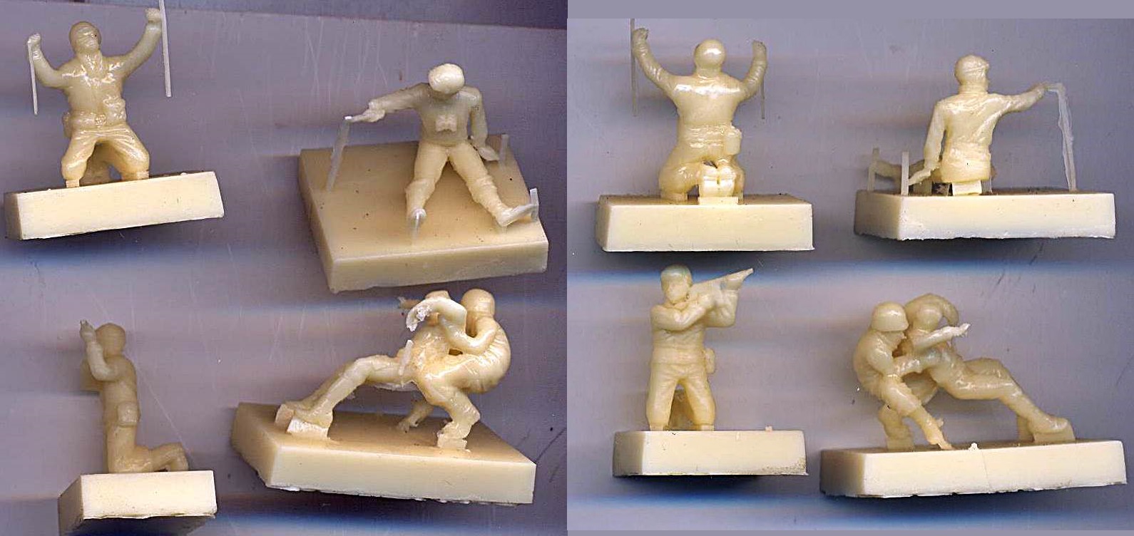 WW2 US Tank/SPG crew evacuation Nicely sculpted set, with very useful poses for a diorama. While the anatomy looks to be correct, it is difficult to tell how well the detail will stand out once painted as the unpainted resin is very glossy. - R. Haelterman