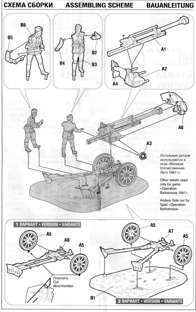 6115 Soviet 37mm AA Gun 61-K with Crew Molded in "semi-hard plastic", which isn't as hard as "normal" kits but harder than the Revell leFH 18 or Italeri's Zis-3 and PaK 40. The cannon is pretty well made, no sinkmarks whatsoever and it can be assembled with or without gun crew. - Victor Hugo Peña Instruction Sheet pg.1