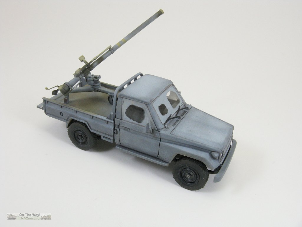 With two kits at my disposal I decided that the first truck would be a build to test overall fit, especially regarding the cabin interior and most crucially the windows. Their fit would be the make or break decision on whether or not to build the second truck. To hedge my bets I also chose a paint scheme that gave me some leeway should the window fit prove to be atrocious. So I chose to toss the ZPU and build it sporting a recoilless rifle in its bed, and camouflage it in an overall grey with painted over windows, similar to the reference photo below.