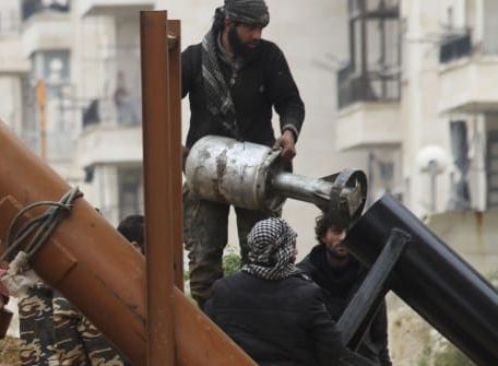 Syrian Liberation Army along with other Islamic factions conceived and built simple, easy to construct artillery designed along the lines of a spigot style mortar.