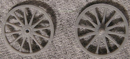 The upper walls and roof appears to be cast metal so I roughed up their interior surfaces. At this point I also built the tongue and cleaned up the wheels, their hubs