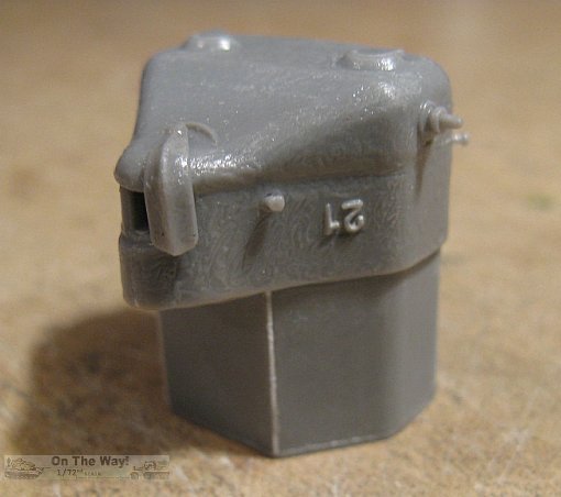 the periscopes (part 46) to poke through if you want the Panzernest in combat position, or over the periscope openings if the Panzernest is to be in towed
