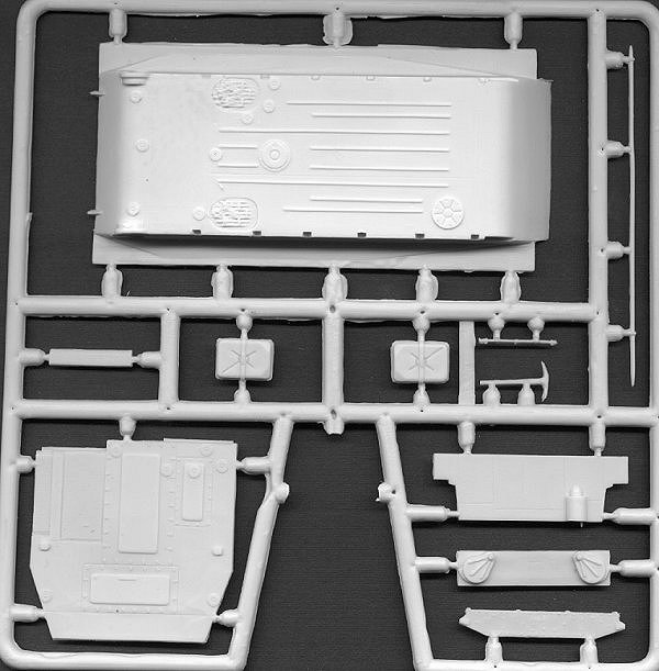 This vehicle was based on the PT-76 chassis, and likewise, the model is based on ACE's previous PT-76 model. The following sprues are the same as the earlier kit: The following sprue is unique to this kit: This model again is typical of ACE. The detail is great, and the vehicle commander's hatch is molded open. Like the PT-76, this will build into a great model. Once again, I would have like to have seen some etched detail parts included. Initial measurements of the unbuilt model show it to be completely accurate to 1/72nd (according to Bronekollektsiya #3.2000).