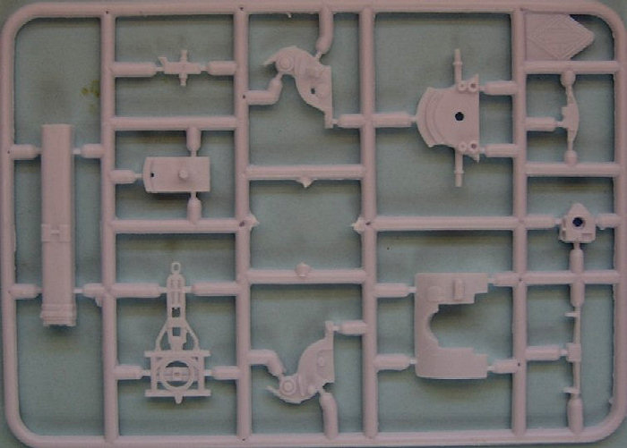 The three main sprues are exactly the same as the A-19 kit. Unlike the A-19 though, wartime pictures are easier to find of the ML-20, and although museum pieces show that the pistons are covered by thin sheet, wartime pictures show the sheet not to be present. The new sprue is the barrel complete with shells and cases. Although the barrel is moulded solid, it has good detail on the outside and with some careful drilling around the muzzel will improve. Another welcome artillery piece from ACE and something for the tractors to tow at last. |