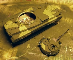 shallow dents on the turret sides had to be puttied and smoothed, though. The turret carries an array of different equipment and most