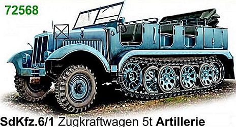 The ACE Sd.Kfz 6/1 artillery prime mover kit 72568, pictured below, was not yet released when I built my model and wrote this review, but I very much look forward