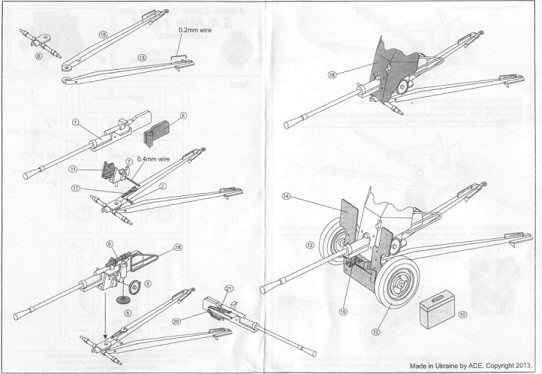 | References http://www.onthewaymodels.com/reviews/ACE/DTaylor_Ace_72523_review.htm An nice assembly review of this ACE model by Dan Taylor. NRC also produces a small scale model of a Hotchkiss 25mm AT Gun Pak 112(f) NRC kit 7299, and a review can be found at http://www.onthewaymodels.com/reviews/NRC/Hotchkiss25mmprev.htm Many other reference photos can be found with a web search. Preview sample purchased by the author. |