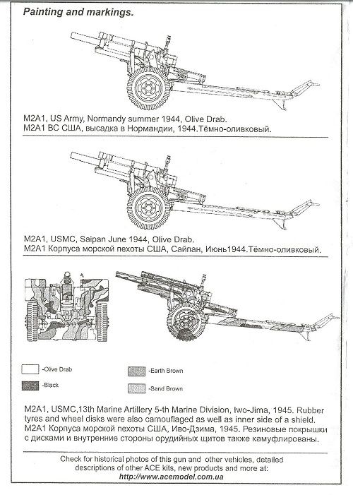 The M2A1 (later M101) was the standard US medium howitzer of WWII through Vietnam. ACE also offer a kit of the post-war M101 (72235),