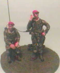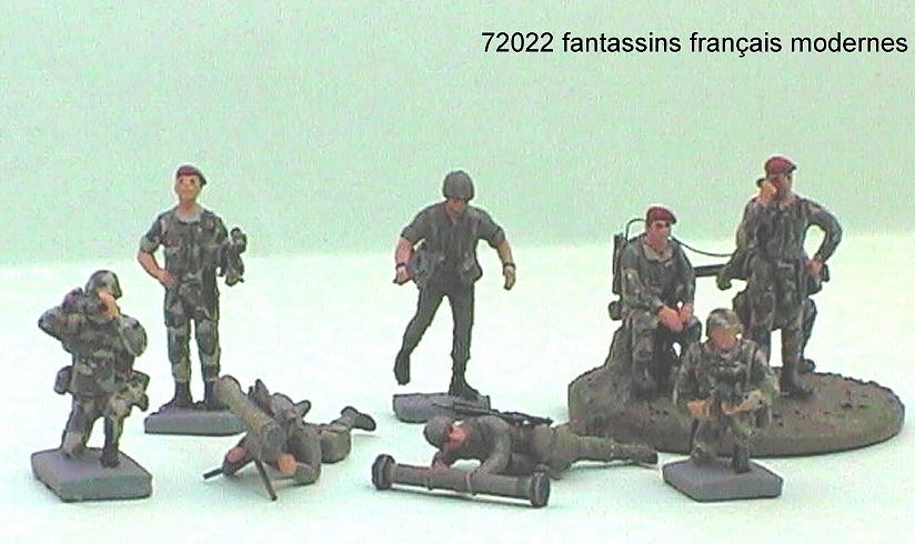 This set contains 9 figures and a small diorama base. There is a MILAN launcher and firer plus a MILAN reloader, a radio man with a PR4G squad radio, an officer using this radio. Figures are painted by Ludovic Bertrand