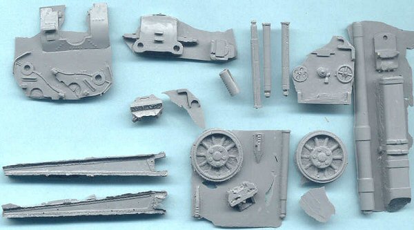 There are 25 gray-green resin parts similar to the resin that LEVA Productions uses. I noted a few very small air bubbles in a few parts. Instructions are a five part, exploded view that appear clear and complete. No decal markings are included though I have seen one photo of one of these guns with a Russian-language slogan on the barrel. This is a very important piece of artillery for the WW2 era Soviet Army and compares in use to the German sFH 18 15cm field howitzer. In modified form, this is the weapon mounted in the Soviet SU-152 and ISU-152 self-propelled assault guns. With what I know of Soviet WW2 colors, when completed it could be in colors ranging from forest-green to light-olive to a brown-olive. It was used by the USSR and Germany and its allies on the Eastern Front. I also believe it served with the North Koreans and Warsaw Pact in the 1950's. I recommend this kit. |