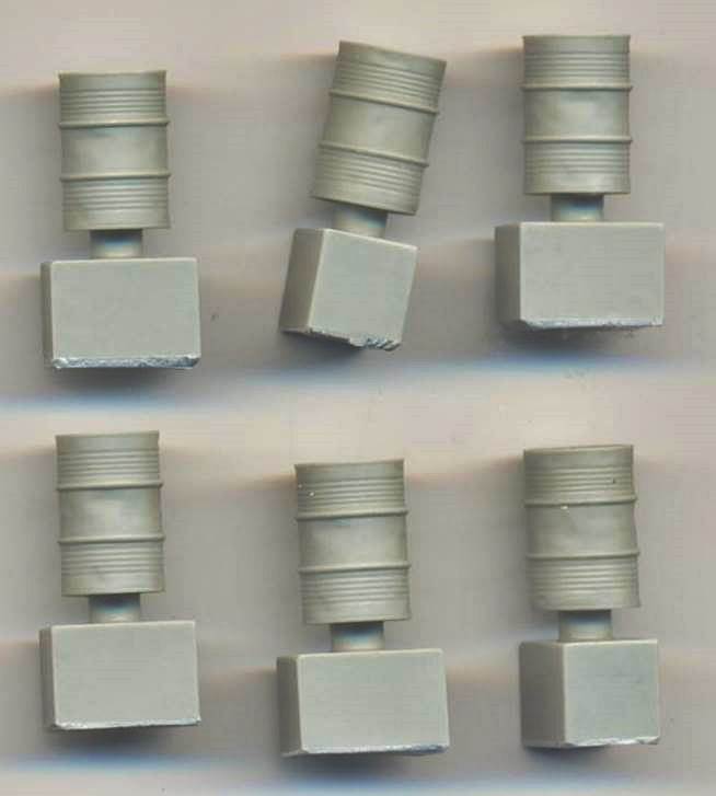 rim on the underside (where the pour block is situated). I measured the diameter at the top rim as 8.3 mm, while the height of the drum is 12.4 mm. This scales out almost exactly to 1/72 based on the real dimensions of 23.5 inches diameter (8.3mm in 1/72) by 34.5 inches high (12.2mm in 1/72) given by Will Alcott.