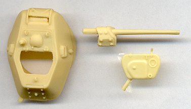 As far as I know, this turret is not available with a full T-34 kit from Al.By. It is also called a T-34/76c, and is basically a replacement for the ESCI 1942 turret. It has lift rings molded onto the turret, and the ventilator cover has been greatly improved over the ESCI kit turret. The turret is hollow, and the hatch has handles molded both on the inside and outside. It is molded to Al.By's typical high standards of quality.