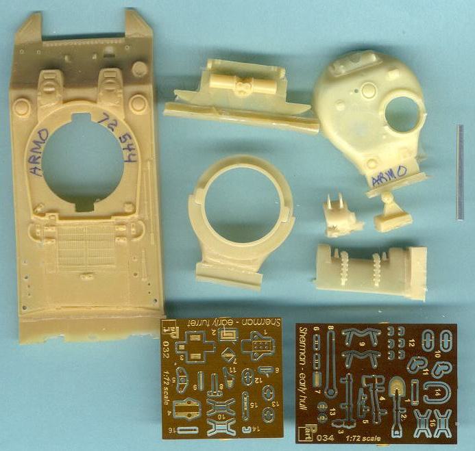 4. At lower right is ARMO’s cast resin version of the M4A2 hull