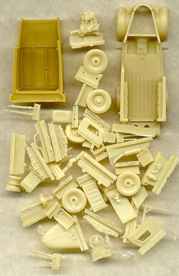 Another one of ARMO's "new breed" of models, this post-war Soviet jeep is a gorgeous kit. The interior is completely detailed, and it comes with a highly detailed engine as well. There is a multitude of parts, for the most part very well cast, although most of the wheels have a single air bubble along the outer edge that will take some careful filling. The remainder of the small parts appear blemish-free. There are lots of parts, many very small, but all are very detailed.