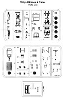 Like all kits you find a few disappointments. No decals are provided for the dashboard instruments. In my opinion this is one thing manufacturers need to do when marketing a vehicle with an open compartment. The decals are very poorly printed; the larger images such as the star insignia show obvious pixilation to the point where you can almost count the dots that make up the image. I did not use any of the decals supplied other than the yellow bridge weight disk, and I made sure that it got right dirty during the weathering process to hide the poor printing. And while I'm on the subject of the weight disk, it is molded right onto the grille (part 3), which will make removal difficult should you wish to build a version that doesn't need one. A nice cover is provided for the passenger compartment but if you leave it off there is no folded framework as you often see in pictures of jeeps with stowed covers. There is a variety of indifferent parts. Jerry cans are too short and squashed, the tools are molded directly to the body, and the leaf springs have no detail for the individual leaves in the spring.
