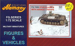 This box is a combo-set, which comes with a set of assault troops, as pictured above. Four complete figures, and two half-figures for tank crewmen are included. They are a mixed bag, with some scale problems. A couple of the standing figures are absolutely huge, whereas the separate arm pieces are miniaturized. New arms will be needed for some of these guys. The poses are a little strange, but I think that one of them is in the process of throwing a hand grenade. Some of the weapons will also need replacing. Aside from those observations, the detail is fairly good, and I actually like the figures better than the vehicle in this set.