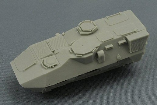 The Pandur hull is a complicated multi-angle affair, which Armada Hobby has succeeded in reproducing correctly. I checked the dimensions against a real (Belgian) vehicle and apart from the lower crew compartment, everything was within my tolerance range. The hull is cast in one massive piece, which will make the finished model rather heavy. All hatches and doors are moulded shut, which is a pity. The prominent anti slip texture, present on the horizontal surfaces of the real vehicle, has not been represented. The pistol ports are missing on both sides. This however can easily be added. The air-condition box (the big square box on the rear part of the left side) is very nicely reproduced. There should be a similar, but smaller box on the right side; this one however is missing. |
