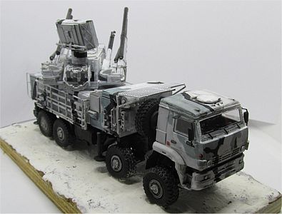 Painting the Pantsir may be fun, because there is a wide variety of schemes effectively applied, from plain green or plain sand to green/sand, green/white, grey/black/white. I chose the attractive Arctic scheme of white/gray/black (or dark grey).