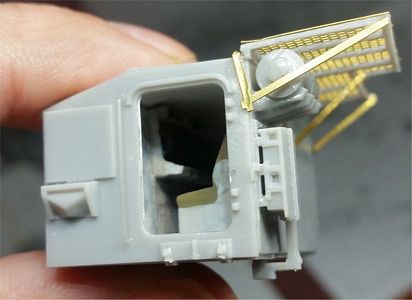 Assembling the two dual 30-mm guns is a real nightmare, which would have you find 6 rigid 4.6mm-long 0.25mm-wide pieces of wire, have them pass through 9 small holes per side in 3 extremely thin PE pieces per side and glue everything together on pieces G23. This is not something for the normal modeller, and it would be nice to supply some sort of a simpler alternative.