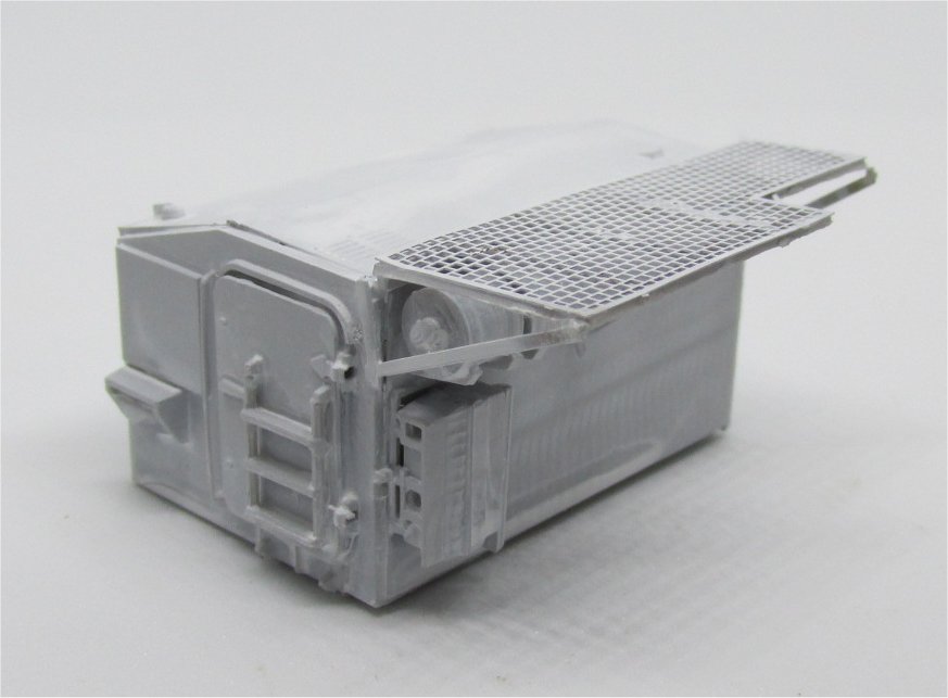 The engine (step 6) is resin, with some plastic parts to be added. Pictures of the real vehicle show it to be more complex-looking that it is here, so it would need a serious over-detailing to be exposed (in the real vehicle, the cab can be tilted anteriorly to access the engine.