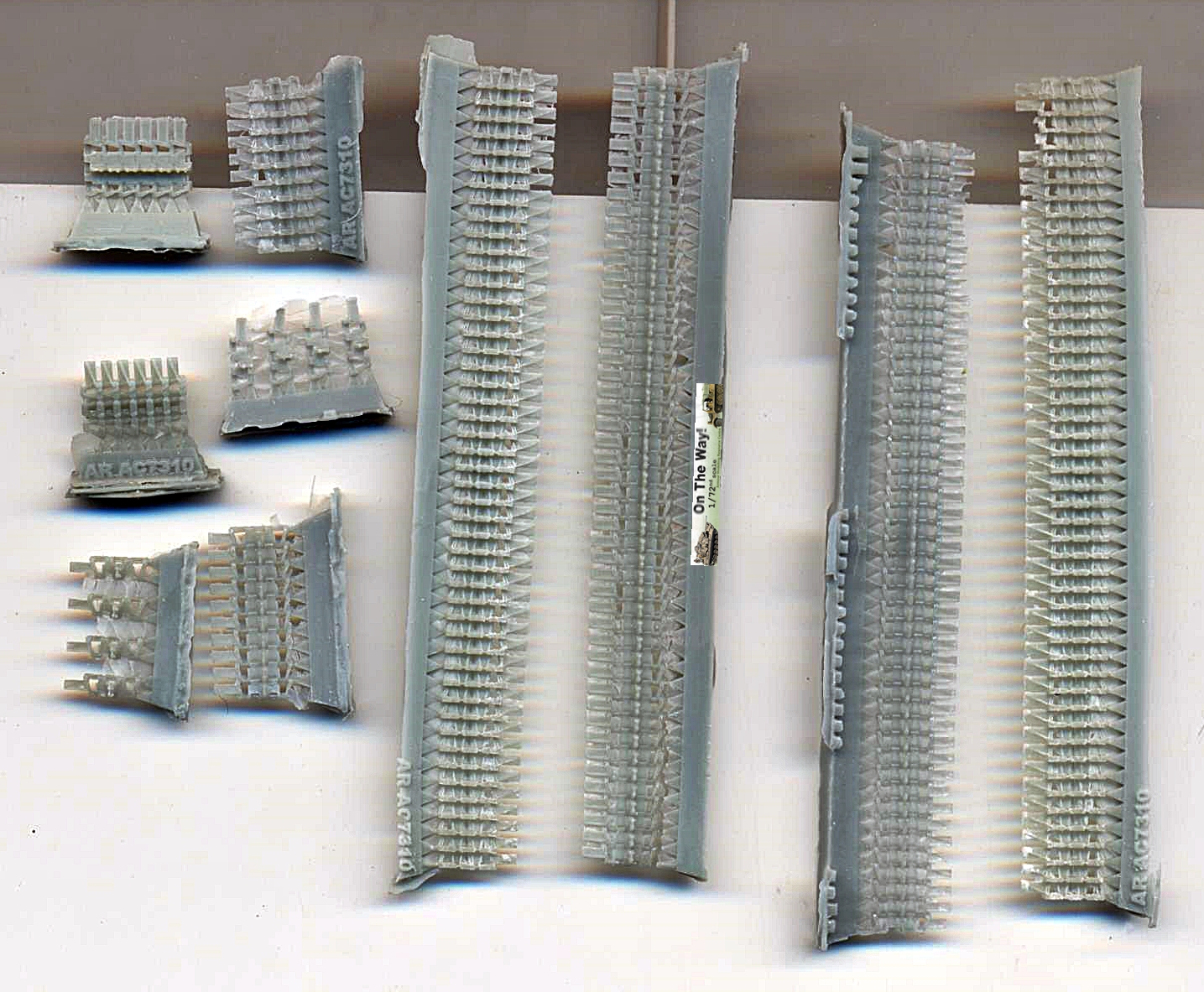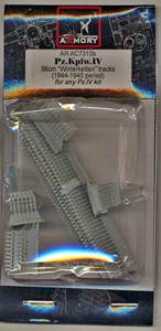 After the first encounters with the Russian climate (and its effect on the road conditions), Germany developped wider tracks for their Panzer III and Panzer IV (and their derivatives). Two types saw service: Winterketten and Ostketten. The former (which appeared first, in the Winter of 1942/43) was basically a standard track with extensions (similar to "duckbills" for Sherman tracks), while the later was a wider, more uniform track. This set of Winterketten is based on a late type track (with chevrons), which is the reason for the "1944-45" label. I am not quite sure how common this was, as I always believed that Winterketten would have been supplanted by Ostketten by that time. The parts