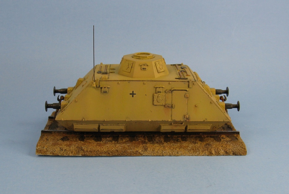 The body comes as two separate and hollow parts, one piece each for the upper hull and lower hulls. Unfortunately the joint between the two parts did not match very well. The top half was slightly wider than the bottom half causing a very noticeable step where the two met. Now I don't have a lot of reference material for this vehicle but I'm pretty sure that the top and bottom halves should produce a flush joint and not have a step. So I had a dilemma on my hands - either leave things as is or at least try to mitigate the situation. I went with the latter choice and tried to get the two halve to line up properly. I was able to get a short run of the center portion of the upper hull to meet along the edge of the lower hull by spreading the upper hull part slightly with a piece of plastic sprue glued between its sides, but this was not possible near the fore and aft portions of the upper hull as there was not enough flex to allow the part to be spread as I had done for the middle. So in the end I had to just leave the fix partially done and live with the end result. The bed frame antenna was an etched part. I didn't like its flat look and it turned out to be very easily bent out of shape. I didn't even bother adding it and chose to fill the mounting holes to convert the vehicle into the non-command Infanteriewagen version which lacks the bed frame antenna but is externally the same as the Kommandowagen. The supplied spotlight was not added and its mounting hole was filled. None of my reference pictures showed one mounted. Some sanding was done to add some curvature to the mufflers and some sandpaper was run edgewise between the exhaust pipes and the body to produce some separation. Then a hole was drilled in each pipe to make them look like hollow tubes. I had a real problem with removing the bumpers from their pour stubs. No matter how careful I was each one had a small notch in its rim after it was removed from its pour stub. I also noticed that one of the bumpers was a bit smaller in circumference when compared with the other three bumpers. And finally all of the bumpers exhibited a small low spot on the dish shaped surface. So out came the super glue and baking soda again to repair the notches, fill the depressions and to add some size to the single runt. A lot of sanding and scraping got them all to an acceptable state and matching each other in size and shape. Usually I try to replace as many of the handles as possible with wire but for this one I limited myself to replacing the handle on the engine access panel. I would have liked to do the steps by the doors but there was not a lot of room to work here and I wasn't confident that I could cut off the resin ones without causing too much damage to the surrounding detail. I also added an antenna and mount to the side as per my references. The primer coat revealed another issue with the kit. Unseen and only discovered after the primer was applied was a fairly wide, but not too high, bulge in the resin that spanned the full length of one side of the body. My first thought was to try and sand away only the bulge but that was quickly discarded as the bulge went through a lot of the kit's detail and sanding was sure to damage most of it. So that left me with the option of either completely replace the side with a scratch built panel or try to sand the panel flat, but in either case I would have to add the removed detail afterwards. In the end I just crossed my fingers hoping that the bulge wouldn't be too noticeable after the paint and weathering was applied. Painting did camouflage the bulge though if you look real close it is still noticeable. I found that the panel lines excised into the kit caused the pin washes to settle in the low spots and make the panel lines look more like dashes. I feel that this was probably caused by inconsistent depth something that you usually don't see with an injected plastic model kit. Decals were so so. I couldn't remove the slight silvering of the carrier film and after eight soakings with Microsol I just gave up and let them be. This is my first complete armour resin kit. I bid on this kit in an eBay auction figuring this would be an easy build because it looked like it had few parts. Well I was right on about the part count, not so accurate on the ease of build. In the end this one didn't leave me with a warm fuzzy feeling about the quality of Attack's other resin kits or of resin kits in general. References: