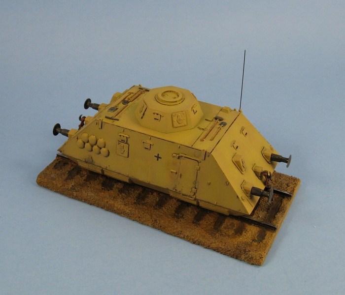 Inside the box are 13 cream/bone coloured resin parts: 12 pieces for the vehicle itself plus a railroad section base. There is a small decal sheet containing six Balkankreuze in three styles - two solid black, two solid white and two white outline only. A small photo-etched frame is provided for the bed frame antenna and its four mounting posts. One oddity was found in the instructions, which shows the wheels as separate parts to be glued to the lower body pan, but in reality the wheels are molded integrally with the pan. Somebody wasn't dropped the ball here! Before construction could commence an inspection of the parts was done to identify any holes and to check the general quality