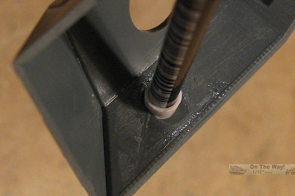 and glue the slab to the inside of the hull centering it's hole with the MG's opening. |