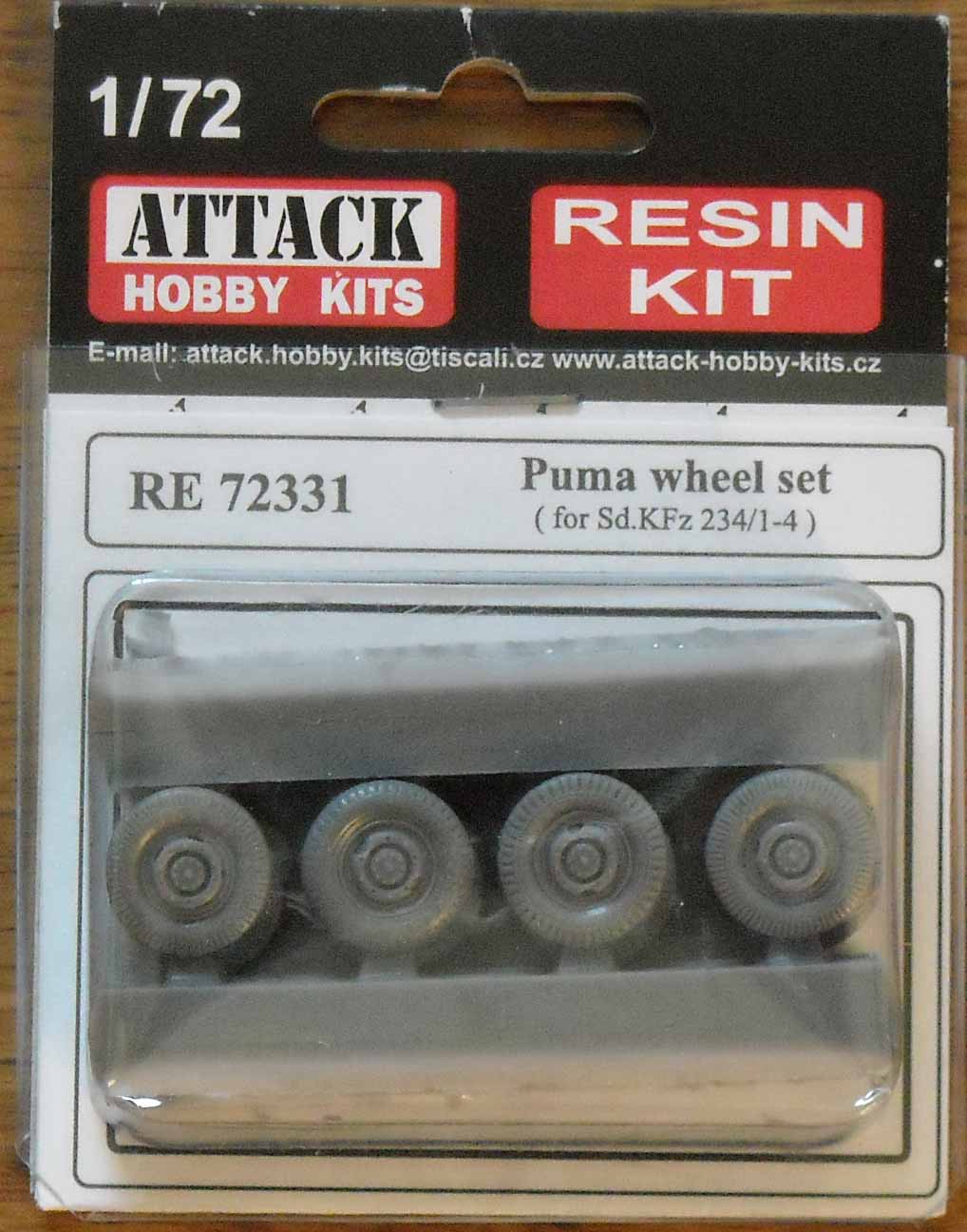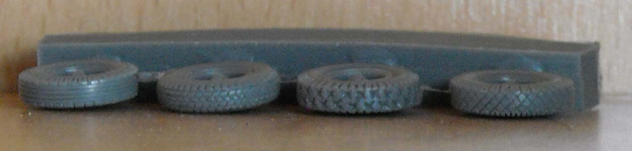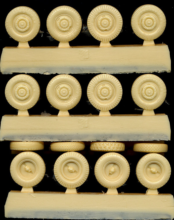 This set contains sixteen wheels for the Sd.Kfz.234 8-Rad series, packaged in a plastic blister-cum-cardboard backing. No instructions are given, only a small leaflet showing the contents of the set. The Sd.Kfz.234 came with a relatively