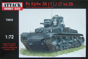 Introduction The kits produced by the Czech company Attack are well-known (and sometimes feared) as typical short-runs with soft details and poor fit. Nevertheless, the Skoda LT vz. 35 was the main tank of the pre-war Czechoslovak army and this kit was eagerly awaited by Czech and Slovak modelers. In the end, Attack really outdid itself and these are their best kits so far. After the occupation of the Czech territory in 1939, most of the tanks were used by Germany as the Pz.Kpfw. 35(t). Some of the LT vz. 35 remained in Slovakia and these saw service on the Eastern Front in 1941. A few of them survived long enough to take part in the Slovak uprising against the Germans in 1944. Other users were Romania and Bulgaria. Romanian tanks were designated as R-2 and they had slightly different rear plates on the turret and hull. 2. Attack's Pz.Kpfw.35(t) series At present the series consists of