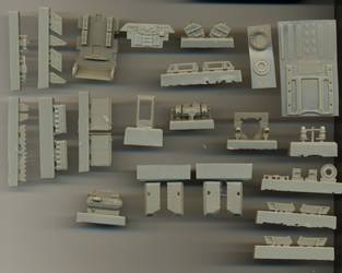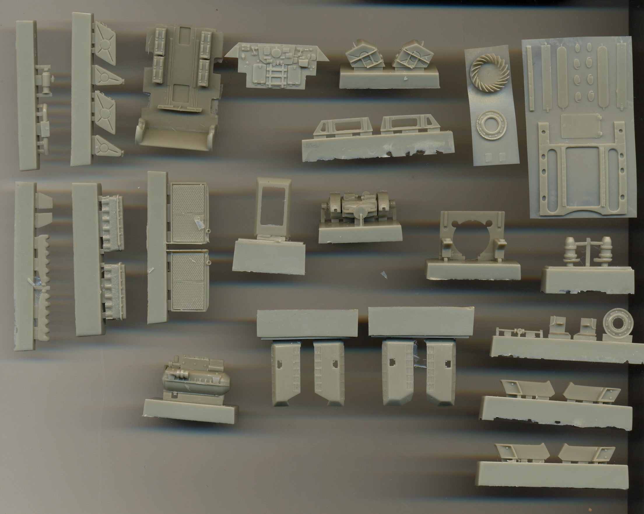 | When I opened the box, I was mightily impressed by the large number of pieces in this kit. When I discovered that there was nothing resembling a manual (except for the picture on the box-top), amazement turned into bafflement and eventually into despair. My first thought was that if a modeler is to assemble all these parts in the right spot, then a well-stuffed library is required. Fortunately, Pavel Benesz from BP Resin contacted me the day this preview was first posted. I now have a clear picture (that looks like an alternative box-top) and a very clear manual. (See pictures at the bottom of this page.) It seems that my set lacked them, which