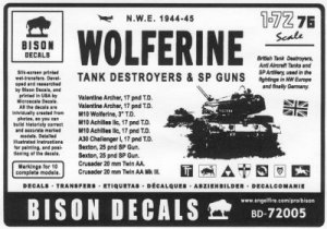 When I recently accessed the website of AFV-Decals, I was dismayed to see a message stating that the company is ceasing business. I have all of their decal sets, and liked them very much. But further down the page there was another statement telling us that in fact, the company is switching gears, and changing their production methods as well as their name. As you know, the new company is now called Bison Decals, and I am happy to say that this new effort has retained all the postive aspects of the old AFV-Decals line (such as indepth research, meticulous detail, and superb instructions), as well as added several more advantages, specifically, the printing of the decals is now done by the world-renowned decal printer, Microscale. (By the way, for those of you who are interested in what a Wolverine (English spelling) really is, look here.)