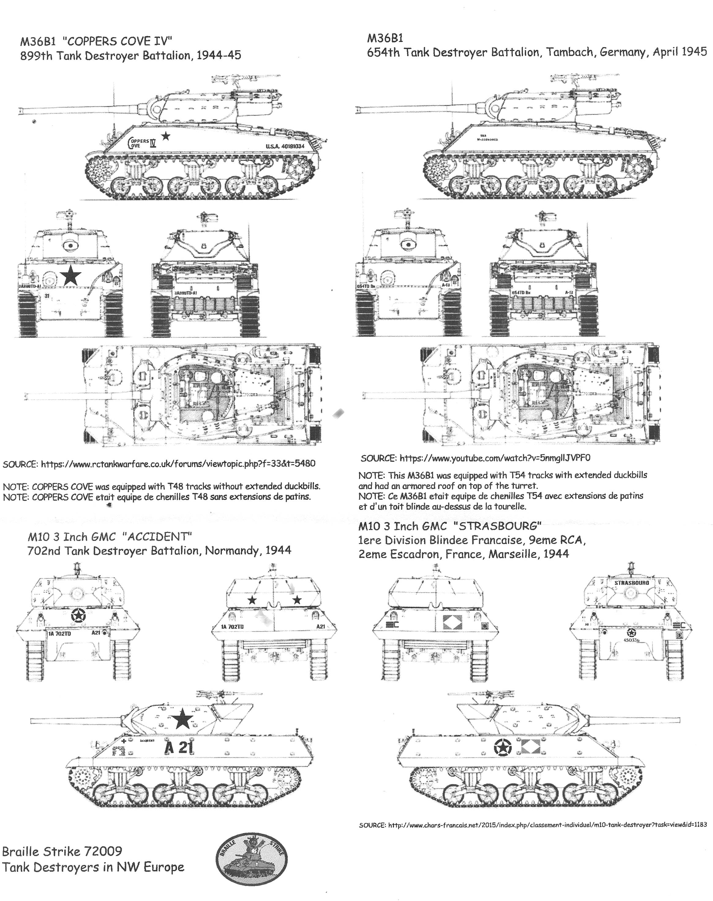 This set covers two M36B1 and two M10 tank destroyers: