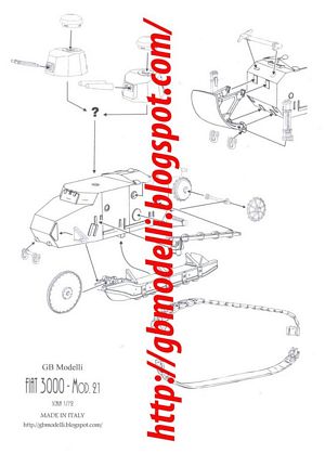 Conclusion This is indeed a 2nd post-1935 serie, and there is no doubt that the kit is a little gem, considering the difficulty of reproducing in 1/72nd scale such a tiny vehicle with all its details. Very few bits are left over for the modeller to add: apart from the plates on the turret, markings and license plate, most vehicles had a chain with square elements wrapped around the tail, which would add that extra finesse to an already outstanding kit, which lets you reproduce almost every MG-armed FIAT 3000 serving in any army from 1935 onwards. Preview sample provided by GB Modelli.