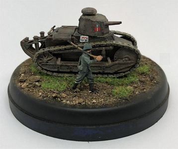 This article has all the information needed to finish a model of the FIAT 3000. This vehicle was operating in Sicily, 1943, during the Allied landing, so it was painted in dark green spots FS14036 on a red brown FS30109 base. The license plate and markings come from Italeri M13/40 fast-build kit. The FIAT 3000s operating in Sicily were very clean (they had been inspected by the King of Italy during an official visit some months earlier !), so weathering is minimal. The figure comes from the Italian Infantry by Airfix.