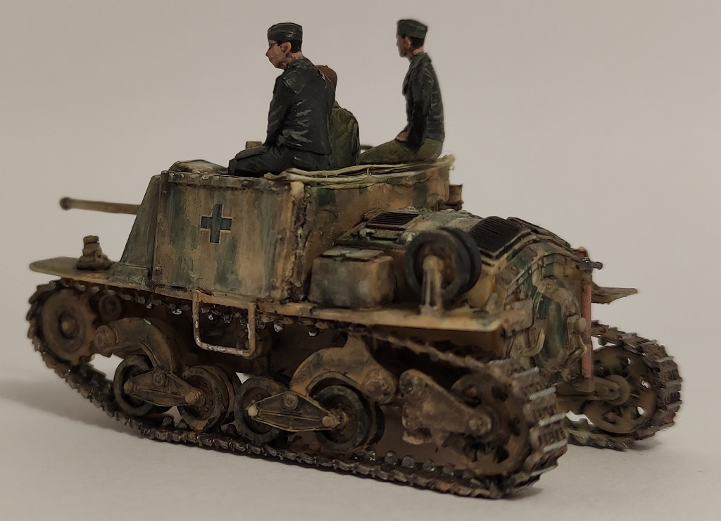 Finishing the model The vehicles entered service with the Wehrmacht in late 1943 and remained operative for less than 2 years. They were re-painted in the usual German sand, with green stripes of different sizes and directions, in some cases air sprayed and in others hand-painted. Most of them had two German crosses on the side, a few had numbers but nothing else. The vehicles looked rather clean (probably they never saw much action), with no extra stowage. Keeping this in mind, the kit was painted and weathered accordingly. The three figures of the crew have relaxed poses, as it can be seen in the rather few photos of the vehicles in service. Thanks to Giorgio Brigà (GB Modelli) for the review sample.