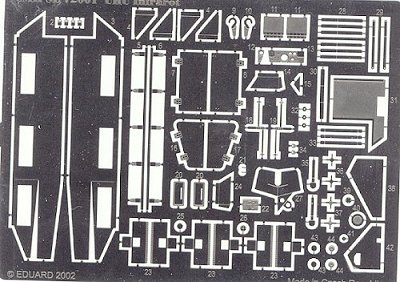 The extensive etched metal sheet is very well done, and produced by Eduard. There are new hull side storage bins with positionable doors, positionable rear compartment doors, positionable engine access doors, and many other details.