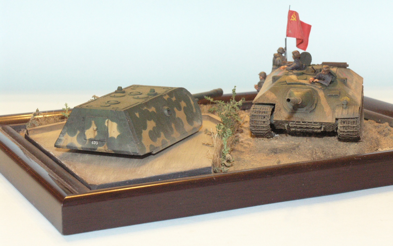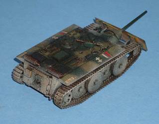 the track pins and track face detail. 5. Personal touch As I noticed there was a rather prominent gap below the gun mantlet (in the design, not just in the kit), I decided to add some spaced Vorpanzer made from plasticard and metal rods. I added two layers, the front layer also giving some protection to the tracks. 6. Painting and marking options No painting/marking options or decals are provided. Then again, the vehicle was never built, so let your imagination run wild. I mixed some colors together, and added Slovak decals from Aleran's AX-2 (Axis Minors) set.