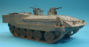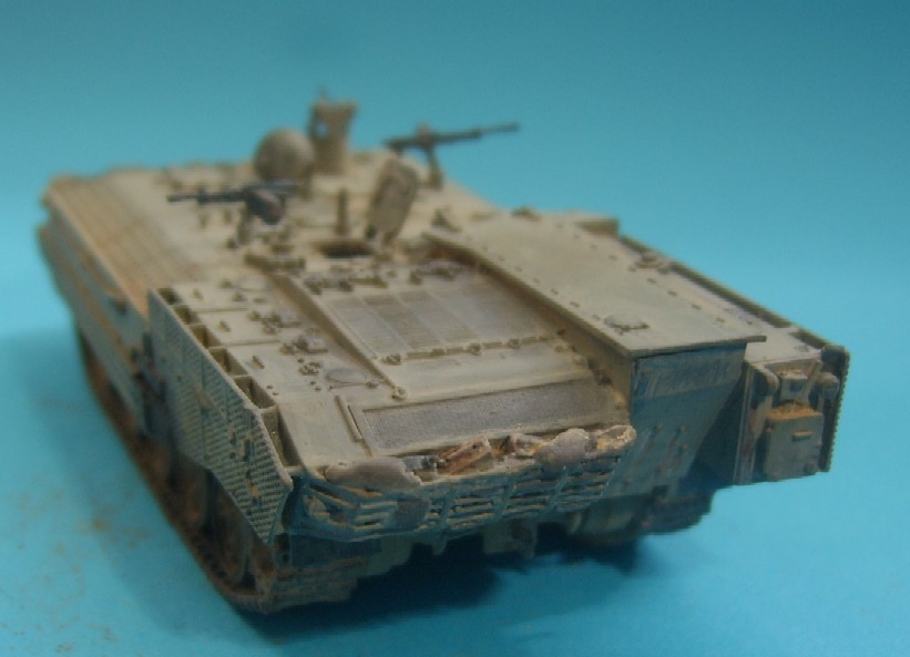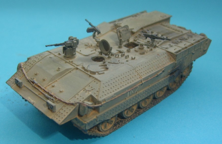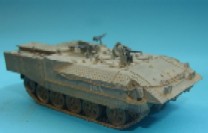 At long last, one model I never thought that we would see in 1/72nd from any manufacturer and as usual after starting to build my own and one gets released ! along with all the others I am building to follow, so it is back to the drawing board for me. The Achzarit is a Heavy APC based on the T-54/55 hull, of which the Israelis' captured a lot of during the 1973 war. The infantry requested a survivable APC for urban combat, able to withstand strikes from the numerous RPGs' and other light AT weapons, the ideal idea, would have been to use the Merkava hull, but as the production of Hulls were needed for the Gun tanks. The solution was found in the IDF storage depots, where several Hundred T-54/55s' plus some that had already been converted to the Tiran were laying. it was available, suitable, due to its thick armoured shell and a very cost effective use of surplus and obsolescent hulls. Back to the kit/Model, Well was it worth the wait? I'll say so! Anybody familiar with the Combat 72 range from Cromwell Models will know what to expect, the Hull, Tracks and most other parts are moulded as one huge block of Resin,with just the hatches and machine guns to add, but the detail is Fantastic. The purist may wish to change a few features, mainly the Toga Armour at the rear, as this could benefit from some PE and is not too big a job to change, even for a novice to conversions. As you can see from the pictures, the hull is well detailed with 4 of the six hatches being able to pose open. The few bits that there are to add, mainly the hatches and guns. The ammunition feed for the sight mounted gun is there, unfortunately mine broke towards the top. The kit scales out to the plans that I have although the nose is shorter than my plans, but judging from photos' of the real thing the Cromwell kit looks to be right, I have no actual measurements for the Achzarit, but I do for the T-54/55 on which it is based. The track and wheel spacing is correct. All in all a very nice and simple kit to put together, The rear ramp is detailed both inside and out should you wish to display it open.The level of detail is amazing for the simplicity of the kit and it will appeal to both wargamers and the static modeller in equal measure. No decals or Instructions are included in the kit, so a few references might be helpful, but the pictures on the net are more than enough help. One piece I did have trouble with, was this small piece, As far as I can work out it is a mortar and it fits next to the LHS hatch, the only place I have seen it is on the Blast Models kit, I have not seen any photos of it actually in place on the vehicle. So What does it build like ??? Well very easily, it takes all of 20 mins to put the kit together, but then another 48 to paint and finish it ! There is very little clean up of parts to do, just a few mould seams around the front and rear fenders. The only change that needs to be done should you wish to model the vehicle closed is to cut some resin from the bottom of the sides on the rear troop exit roof and to cut down the operating ram on the RHS. Here's what it looks like made and painted. A great model to build, I had fun with the weathering and painting. I recommend this to all. References Modern Israeli Tanks and Infantry Carriers 1985-2004 by Marsh Gelbart Osprey publishing New Vanguard 93 Israeli Tank Based Carriers by Marsh Gelbart, Military briefs Various Web sites and discussion forums for pictures. http://idfmodelling.free.fr/refvehicle.html http://www.israeli-weapons.com/ http://www.geocities.com/moshe_madness/temple_mount_war/photos.htm http://www.waronline.org/en/